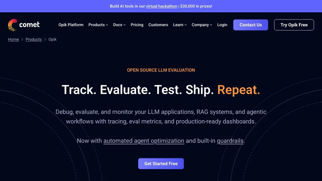 Opik is an open-source platform for debugging, evaluating, and monitoring LLM applications, including RAG systems and agentic workflows. It provides end-to-end tracing, evaluation tooling, and dashboards to help teams improve quality from prototype to production.