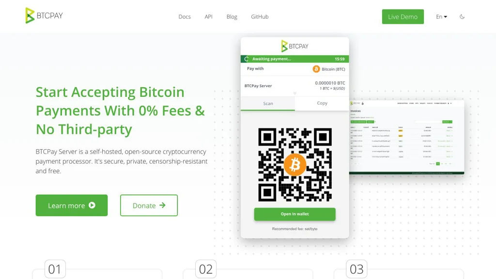 BTCPay Server is a free, open-source Bitcoin payment processor that lets individuals and businesses accept payments directly to their own wallet without intermediaries. It supports both on-chain Bitcoin and Lightning Network payments and includes built-in apps for common commerce and donation flows.
