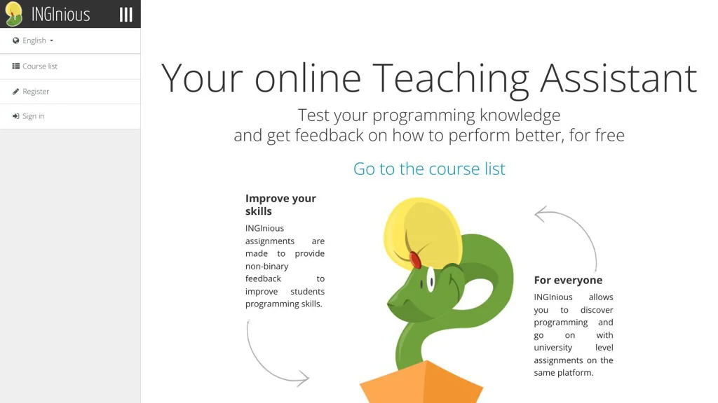 INGInious is suitable for institutions and instructors who need a configurable, containerized autograding solution that integrates with existing LMS workflows. It emphasizes secure execution, extensible grading environments, and a teacher-focused administration interface.