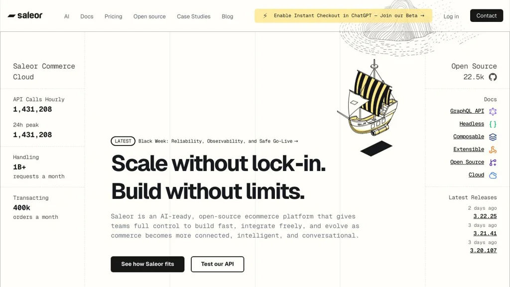 Open-source, API-first commerce backend with modular architecture for custom storefronts and marketplaces.
