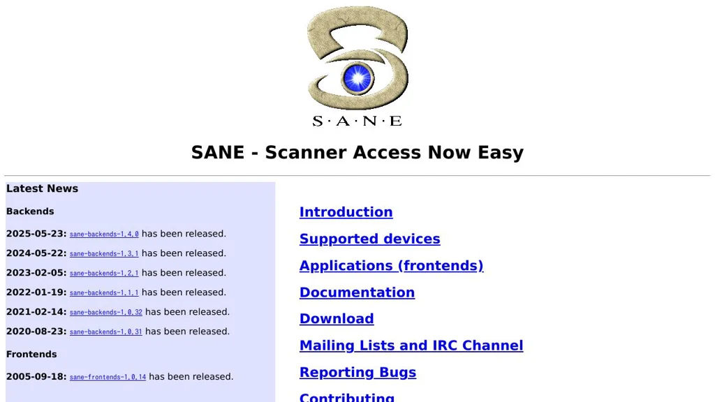 SANE (Scanner Access Now Easy) is an open-source API and project that provides a standardized interface to raster-image acquisition devices (flatbeds, handheld scanners, cameras, frame grabbers) and a collection of device backends and frontends. It includes a command-line frontend, the saned server for network access, and many hardware-specific backends.