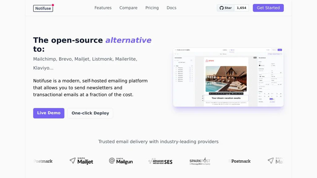 Self-hosted open-source marketing automation platform with campaign builder, email/landing page editors, REST API, segmentation, and extensible plugins.