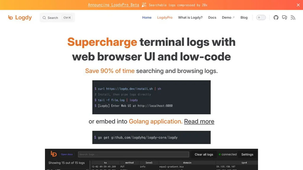 - Cost-efficient storage by keeping logs compressed and indexing only metadata