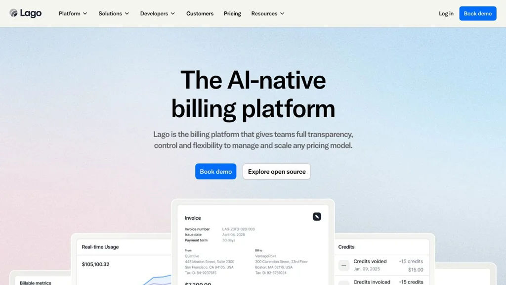 Lago is an open-source billing infrastructure platform focused on event-based usage metering and hybrid pricing (subscriptions plus consumption). It provides an API-first approach with a visual interface to help teams model pricing, track usage, and generate invoices.