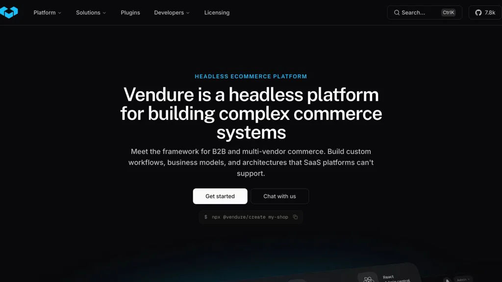 Vendure is an open-source, headless commerce platform that provides an API-first foundation for building complex e-commerce systems. It combines a customizable server framework with a modern admin dashboard and developer tooling to support B2B, multi-vendor, and D2C scenarios. (vendure.io)