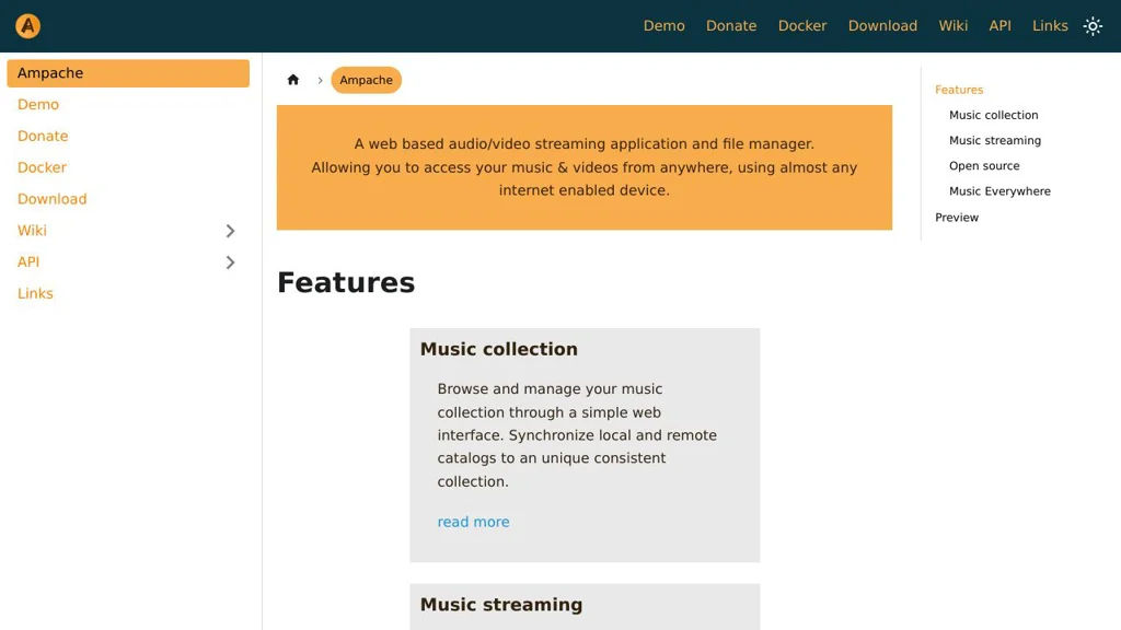 Ampache is a mature, long-running project focused on giving you consistent access to your media collection through the web and compatible clients. It is well-suited for users who already maintain an organized library and want streaming, browsing, and API access in one place.