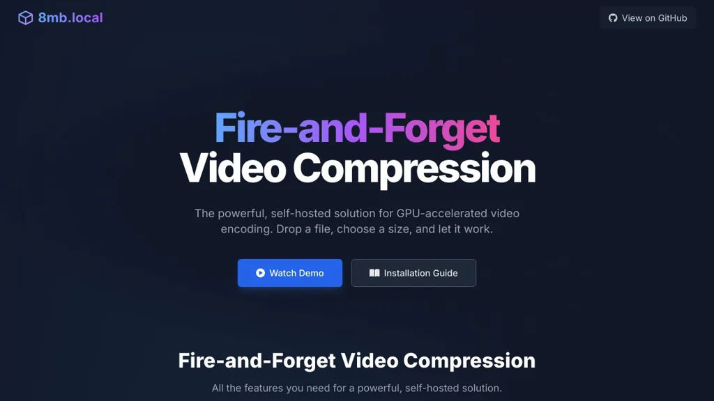 8mb.local is a practical choice for users who want a simple, performant, self-hosted video compressor with reliable hardware acceleration and clear, real-time visibility into job status and logs.