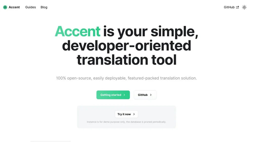Accent is a developer-oriented translation management platform (TMS) for maintaining i18n strings in web and native applications. It combines a productive web interface with an API-first approach to streamline collaboration between developers and translators.