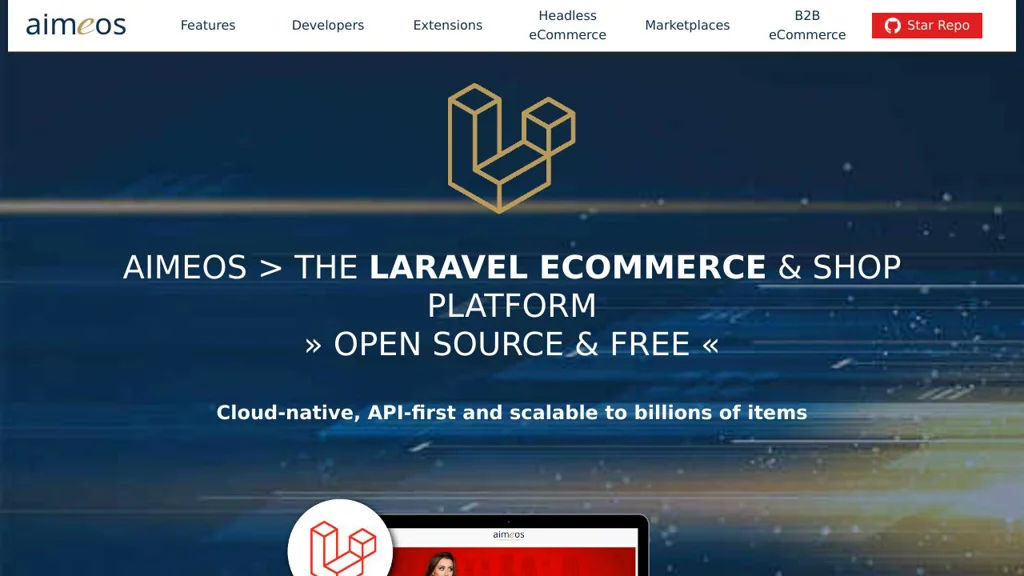 Aimeos is an open-source, API-first e-commerce framework and shop distribution for Laravel, designed for high performance and scalability from small stores to large marketplaces and B2B commerce. It provides a modular architecture with a full admin backend and extensive commerce features.