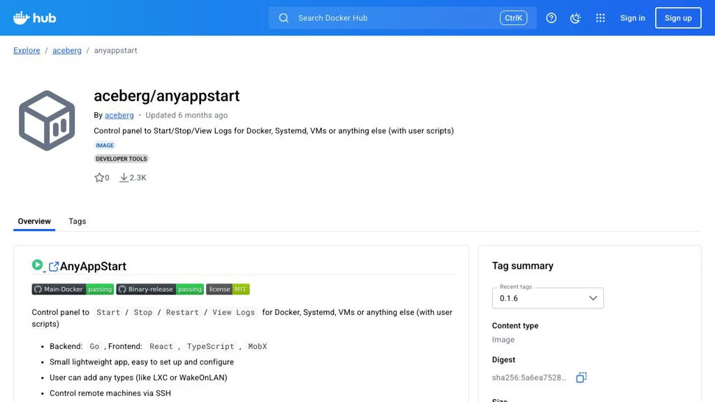 AnyAppStart is a lightweight web control panel for managing services and applications across local and remote environments. It provides start/stop/restart actions and live log viewing for targets such as Docker containers, systemd units, VMs or any custom type via user scripts and SSH.
