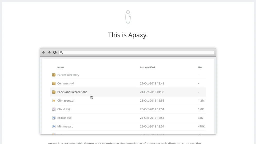 Apaxy is best suited for users who want a lightweight, theme-based way to improve Apache directory listings without adding a separate file management application. It offers flexible styling and presentation while keeping the underlying Apache indexing behavior intact.