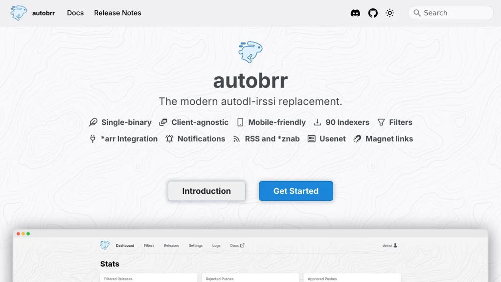 autobrr provides a focused, configurable layer for intercepting and routing newly announced releases into existing download and media-management workflows. It is designed for resource efficiency and integration with common containers, databases, and client software.