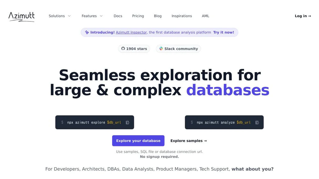Azimutt combines visual exploration, structured documentation and automated analysis to make databases easier to understand and maintain for teams. It is geared toward developers, data engineers and architects who need a compact, shareable view of complex schemas.
