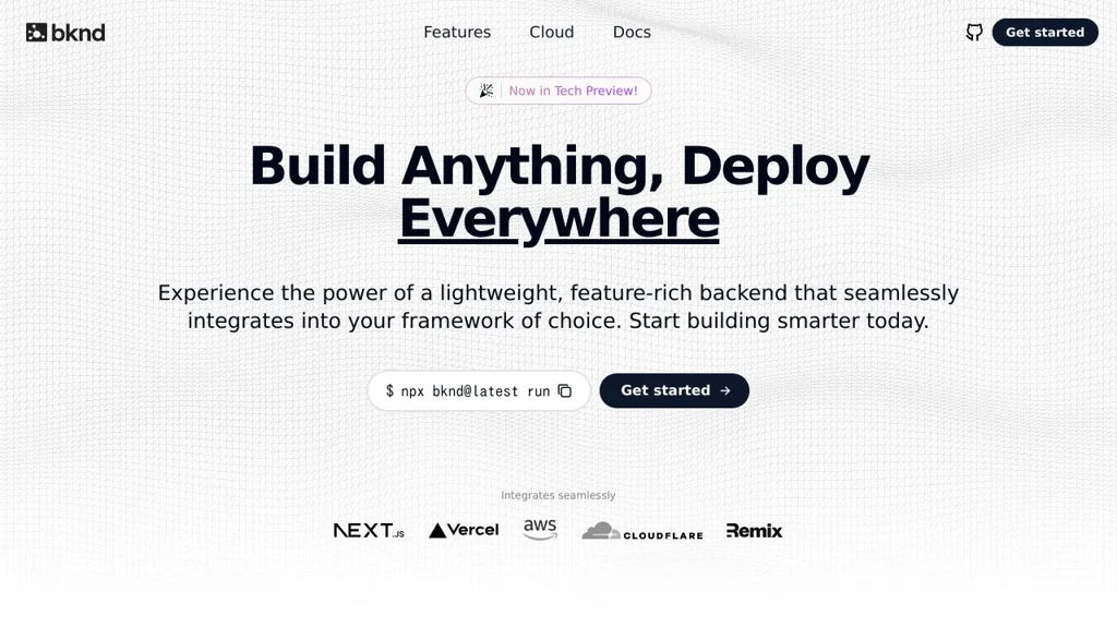 bknd is a lightweight backend platform that provides core primitives most applications need, including data management, authentication, media handling, and workflows. It is designed to run in many JavaScript runtimes and can be deployed standalone or embedded into popular web frameworks via adapters.