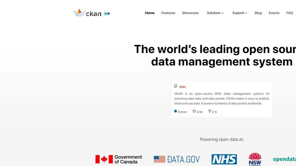CKAN is an open-source data management system (DMS) used to power data portals and data hubs. It helps organizations catalog datasets, publish metadata, and make data discoverable and accessible through a web interface and APIs.