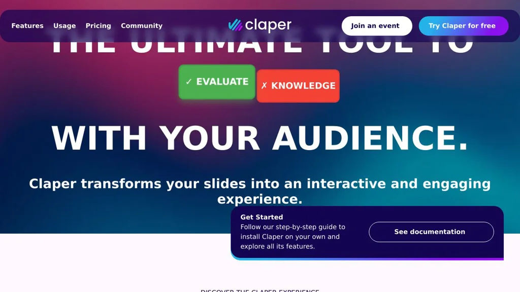 Claper is well-suited for educators, teams, and event organizers who want a lightweight, real-time interaction layer for presentations. It provides core engagement workflows while remaining deployable on your own infrastructure.