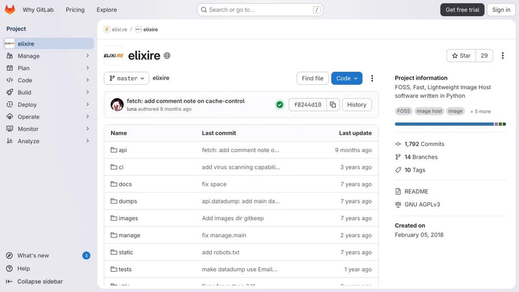 elixire is an open-source, lightweight image hosting and link-shortening application implemented primarily in Python. It provides a web UI, account management and an API for uploading images and creating shortlinks, and is distributed under a permissive FOSS license.