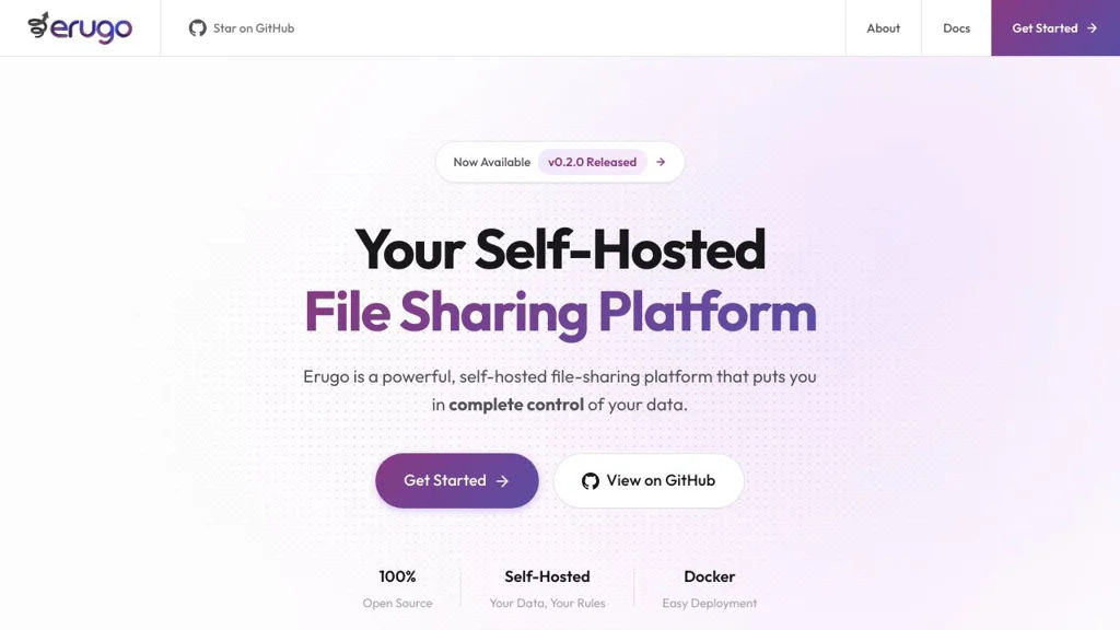 Erugo is a self-hosted, open-source file-sharing platform that provides a simple web interface for sending and managing files. It combines a Laravel-based backend with a Vue.js frontend and is designed for easy Docker deployment and minimal system requirements.
