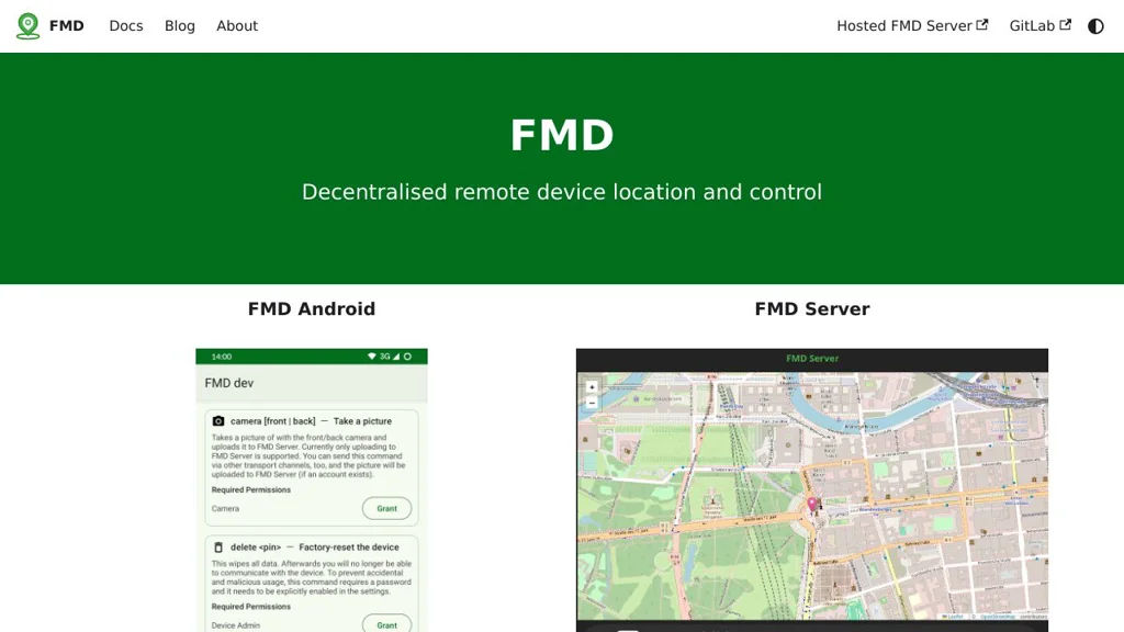 FMD Server is a self-hostable web server that connects to the FMD Android app to help you locate and remotely control your Android device when it is lost or misplaced. It provides the backend APIs and a web interface used to issue commands and view device status.