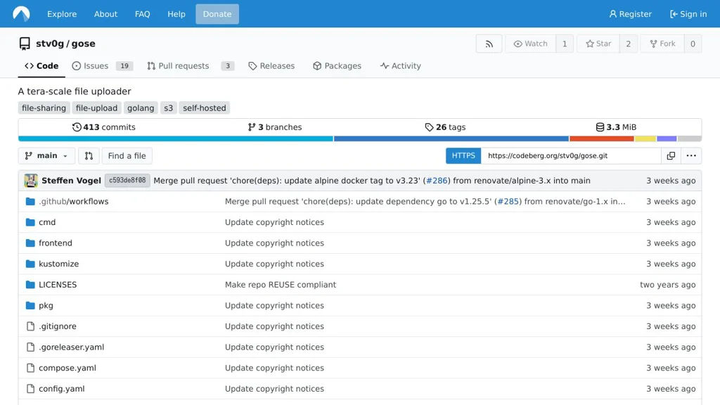 GoSƐ is a modern file uploader designed to scale horizontally by keeping all state in an S3-compatible object storage backend. Uploads and downloads are performed directly against S3 using pre-signed requests, reducing application bandwidth and server load.