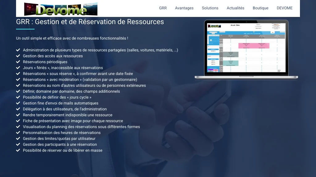 GRR is an open-source web application for managing and reserving shared resources such as rooms, equipment and vehicles. It is an adaptation of the MRBS PHP/SQL booking system and targets organisations that need calendar-style resource reservation and administration. (devome.com)