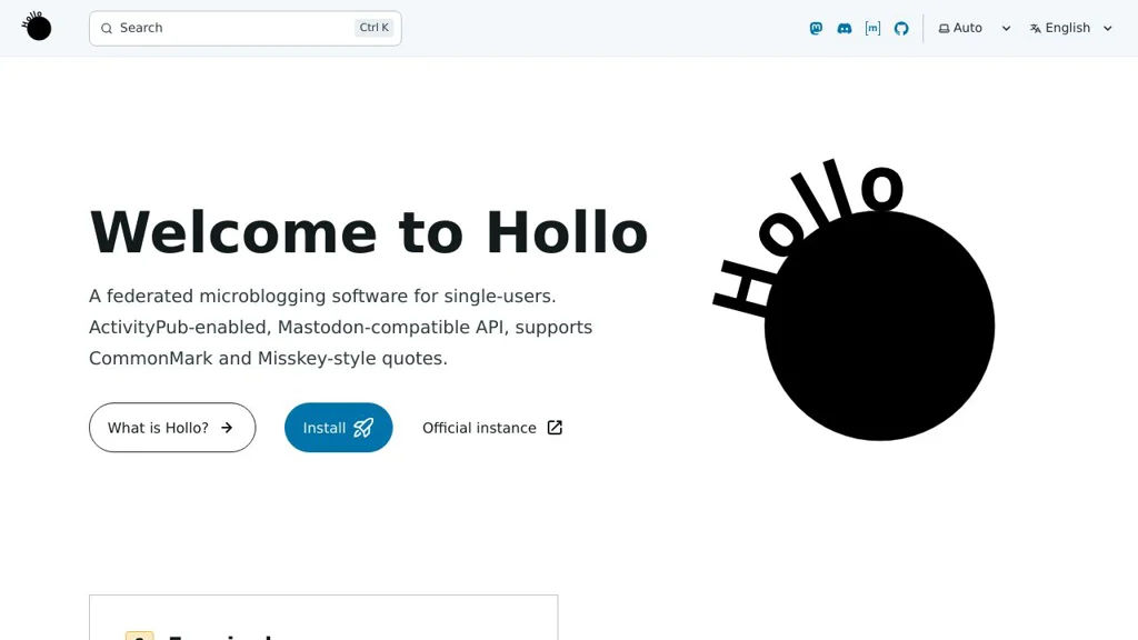 Hollo provides a lightweight, standards-based way to run a personal presence on the fediverse using familiar Mastodon clients. It is suitable for users who want a simple, federated microblogging setup without a full multi-user server stack.