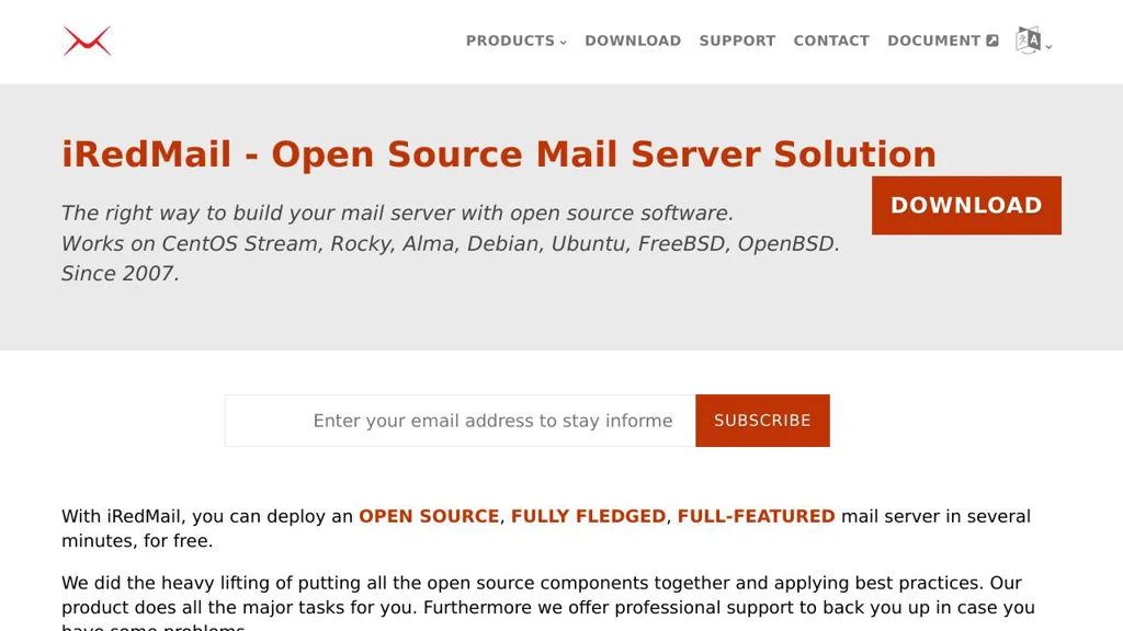 In summary, iRedMail is a mature, opinionated integration of proven open-source mail components that simplifies deploying a secure, standards-compliant mail server across mainstream Linux/BSD systems while providing paid options for enhanced management and support. (iredmail.org)