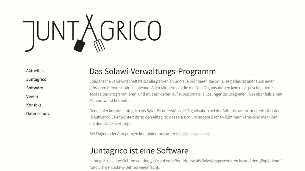juntagrico is a web application designed to help community-supported agriculture (CSA) groups, community gardens, and vegetable cooperatives manage their administrative workflows. It focuses on member and subscription management, delivery coordination, and share distribution to reduce paperwork and operational overhead.