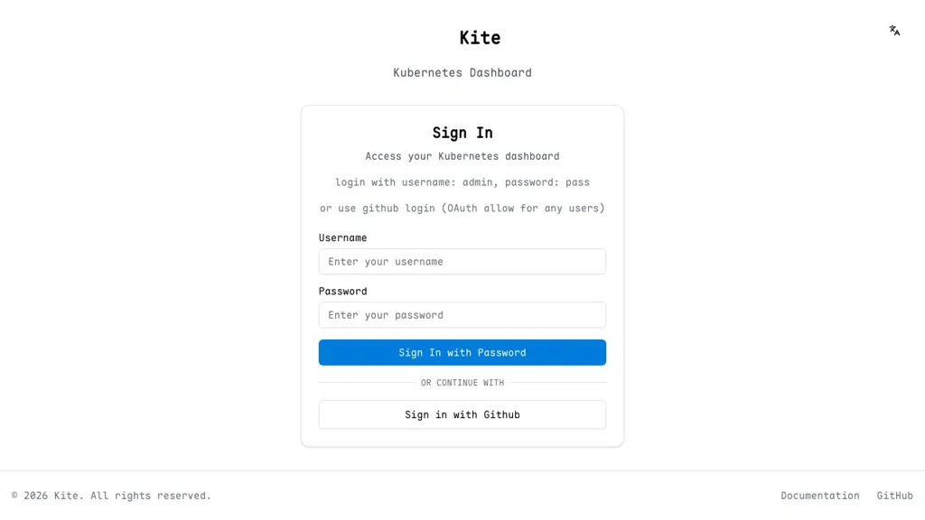 Kite is a modern, lightweight Kubernetes dashboard for managing and monitoring one or more clusters through a web UI. It focuses on fast navigation, comprehensive resource coverage, and integrated observability features.