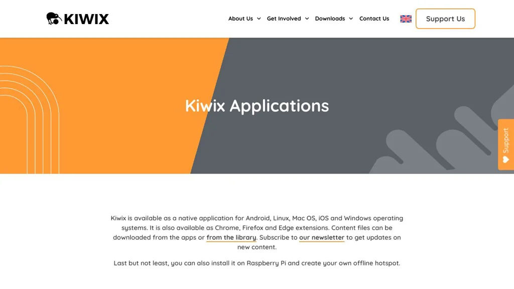 - Works with Kiwix libraries (XML) managed via companion tools such as kiwix-manage
