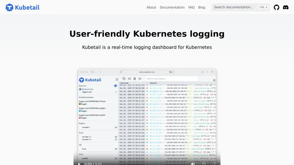 Kubetail is a real-time logging dashboard for Kubernetes, optimized for tailing logs across multi-container workloads. It merges container logs into a single chronological timeline and can be used from a web UI or directly in the terminal.