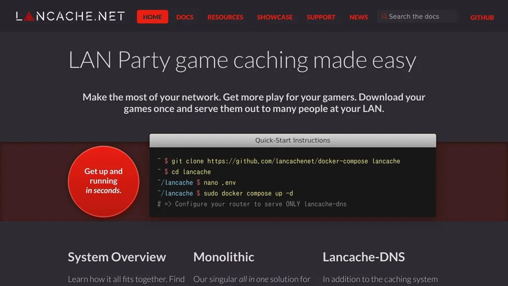 LanCache (Monolithic) is a containerized caching proxy designed for LAN environments to locally cache game and software downloads from many content delivery networks. It reduces repeated internet downloads by serving cached content to clients on your network.