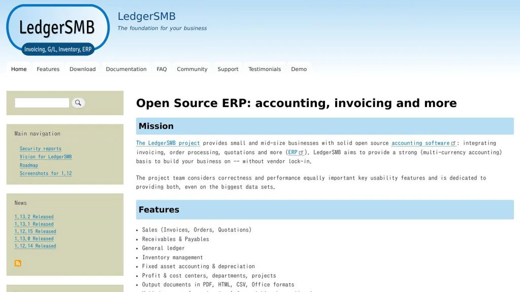 LedgerSMB is designed to be scalable and data-integrity focused, while keeping advanced features configurable so smaller deployments can remain simple. It is well-suited for organizations wanting a full-featured accounting core with ERP-style workflows and customizable outputs.