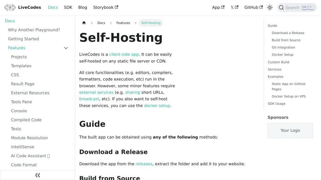 Conclusion: LiveCodes provides a no-install, client-side playground with broad language support and an embeddable design, suitable for docs, tutorials, and in-app coding experiences. The project also offers Docker-based self-hosting for more control over services when needed.