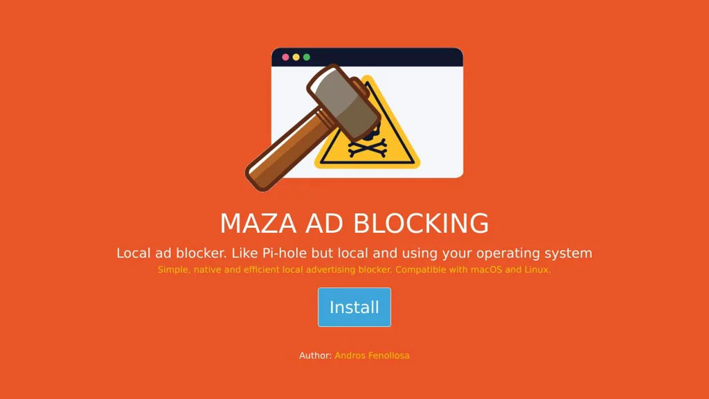 Maza ad blocking is a lightweight, local ad blocker that blocks domains at the DNS/hosts level using native operating system tools. It is implemented as a Bash script and works across common Unix-like environments, including Linux and macOS.