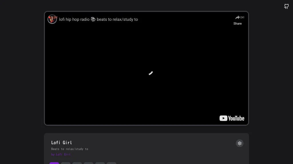 - YouTube integration for continuous lofi streams using client-side playback