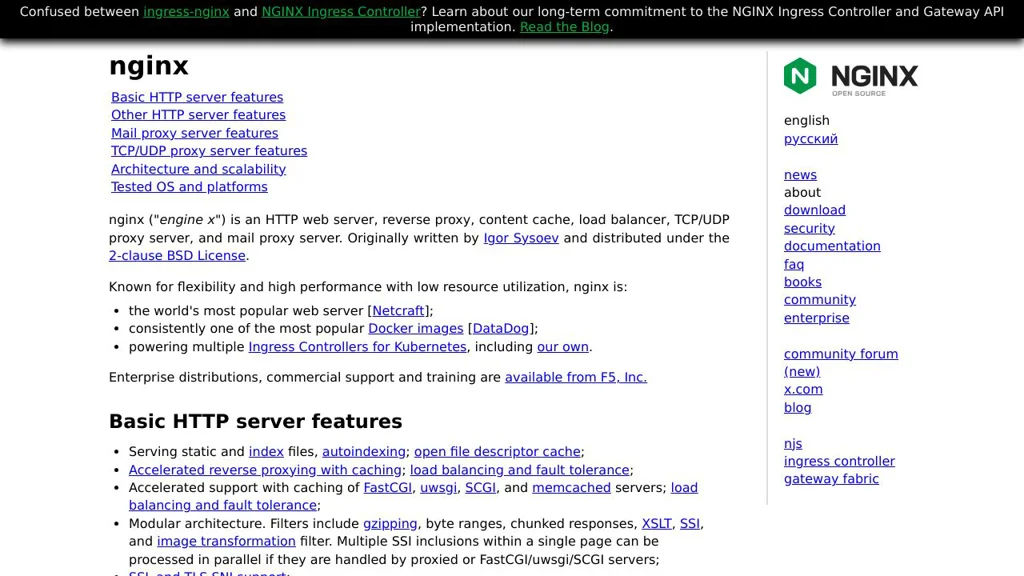 - TLS/SSL support including SNI, and modern protocol support such as HTTP/2 and HTTP/3