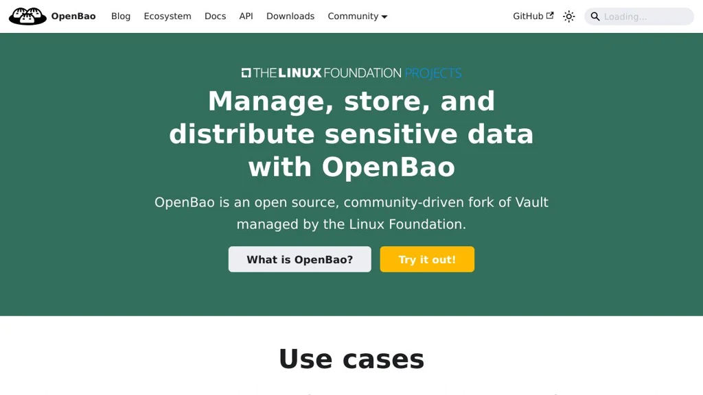 OpenBao is an open source, community-driven secrets management system for securely managing sensitive data such as secrets, certificates, and cryptographic keys. It provides centralized access control and auditing to help teams control and track secret usage across applications and infrastructure.
