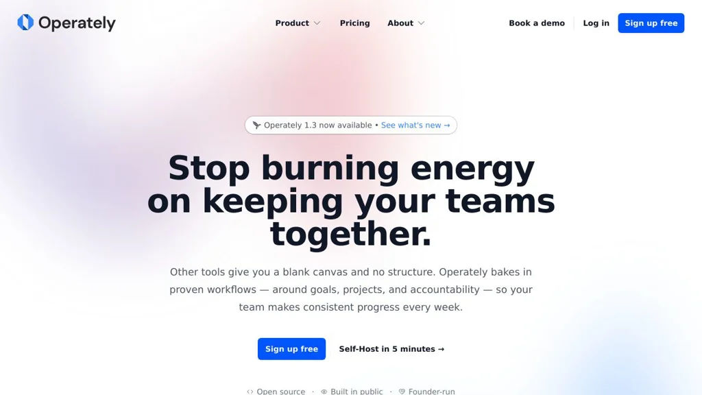 Operately is focused on providing an opinionated, workflow-first alternative to flexible note tools: it ties goals, projects and reviews together so teams make consistent progress without reinventing processes. For teams wanting an open, self-hostable company OS with built-in operational workflows and an evolving AI assistant, Operately is positioned as a practical choice. (operately.com)