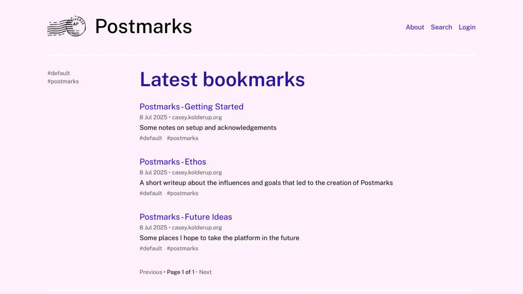 Postmarks is a single-user bookmarking website you host yourself, designed to connect to the Fediverse via ActivityPub. It lets you curate and publish bookmarks from your own instance while interacting with other Postmarks instances and compatible text-based ActivityPub platforms.