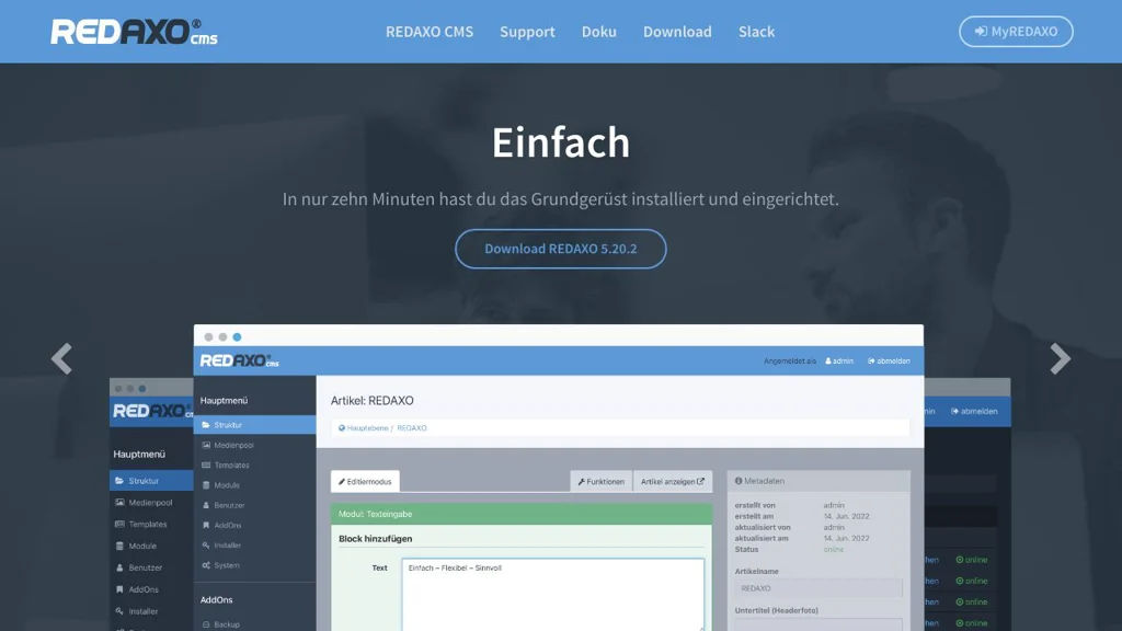 REDAXO is suited for projects where developers need direct control over frontend output and editors need a straightforward, extensible backend. It is particularly attractive for teams that want a lightweight, modular CMS that can be extended via AddOns and custom modules.