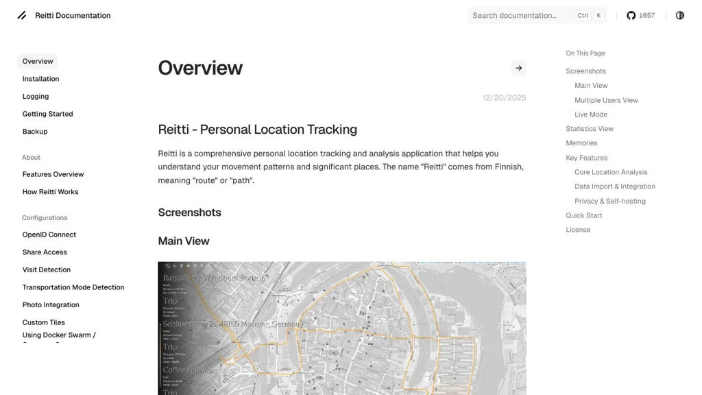 Reitti is well-suited for users who want detailed location analytics beyond simple tracking, with strong import options and live ingestion from common mobile tracking apps. Its combination of timeline visualization, visit/trip detection, and extensibility through APIs makes it a practical personal geospatial analysis platform.
