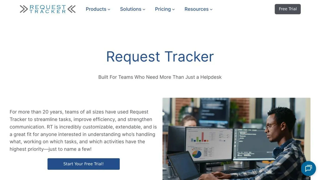 Request Tracker (RT) is an open source, enterprise-grade issue and ticket tracking system used to manage requests, tasks, and support work. It combines a full web interface with deep email integration and extensive customization for workflows, permissions, and automation.