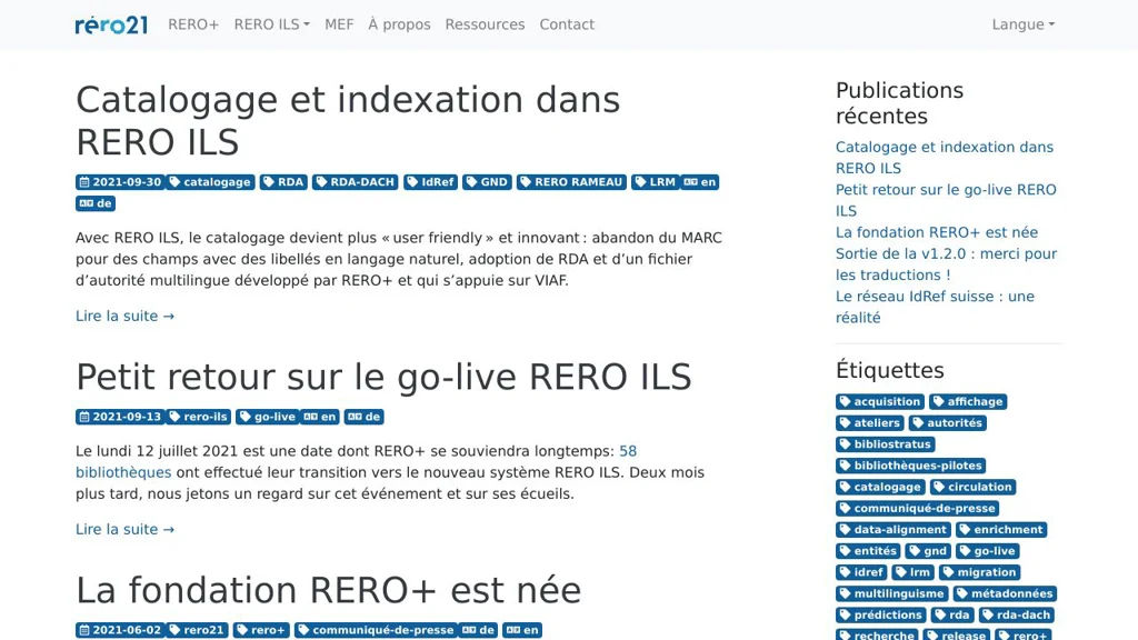 RERO ILS aims to modernize library management with an open-source, configurable backend and a flexible frontend, enabling data exchange through APIs and a robust public interface. It is actively developed by RERO+ in collaboration with UCLouvain.