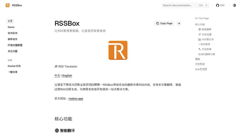 RSSBox is a self-hosted RSS management service focused on making multilingual information consumption easier. It can translate, summarize, and filter RSS content, and publish the processed results as new RSS or JSON feeds for your readers and apps.