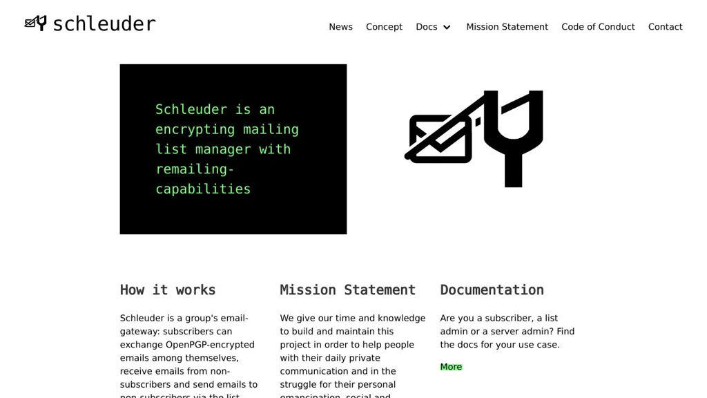 Schleuder is a mailing list manager designed for secure group communication using OpenPGP. It acts as an email gateway for a group, handling encrypted list mail and enabling controlled remailing to recipients outside the list.