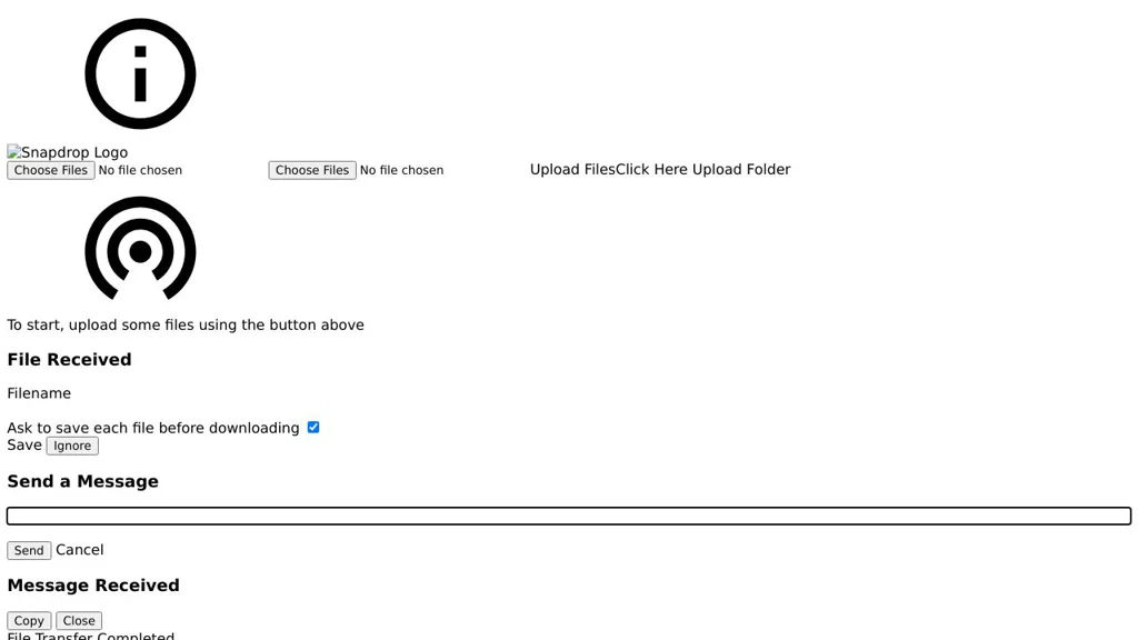 Snapdrop is a Progressive Web App (PWA) for transferring files and messages between devices on the same local network directly from a web browser. It uses peer-to-peer connectivity to send data between nearby devices and is commonly used as an AirDrop-like alternative across platforms.