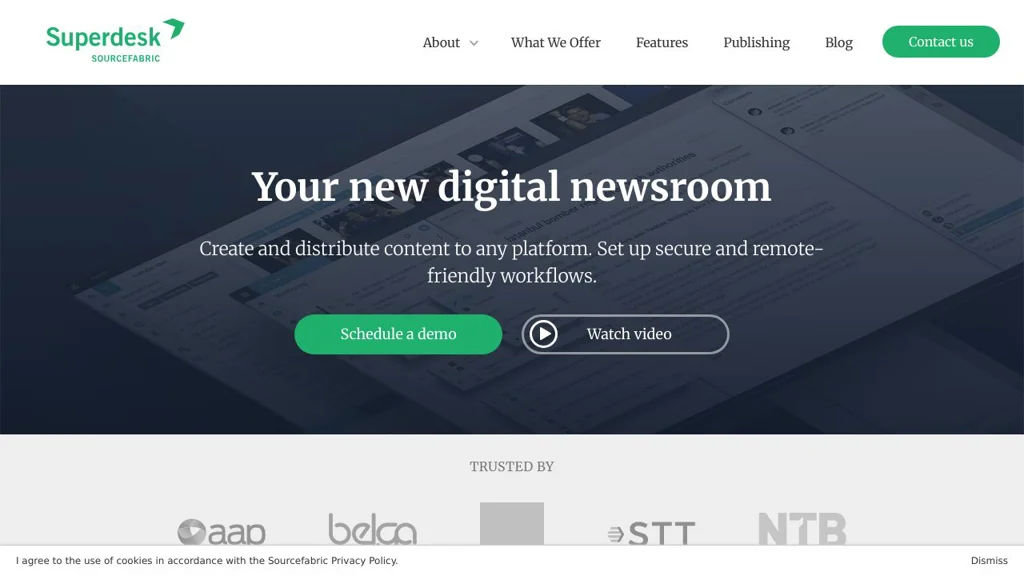 Superdesk is an open-source, web-based digital newsroom system for creating, editing, curating, packaging, and distributing news content. It combines headless CMS capabilities with editorial workflow and planning features, designed to scale from small publishers to large news agencies.