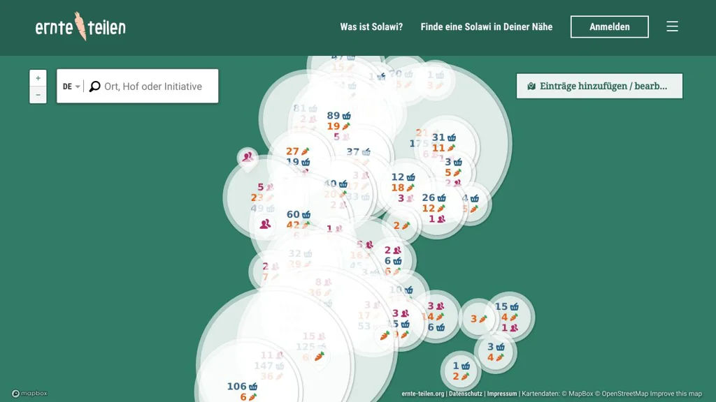 Maps community-supported agriculture across Germany, Switzerland and Austria