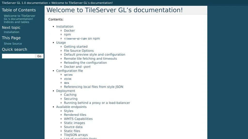 TileServer GL is a practical option when you need a configurable, container-friendly tile server that can serve both vector tiles and rendered map outputs from common MBTiles datasets. It fits well in self-hosted GIS deployments where compatibility with multiple clients and protocols is important.